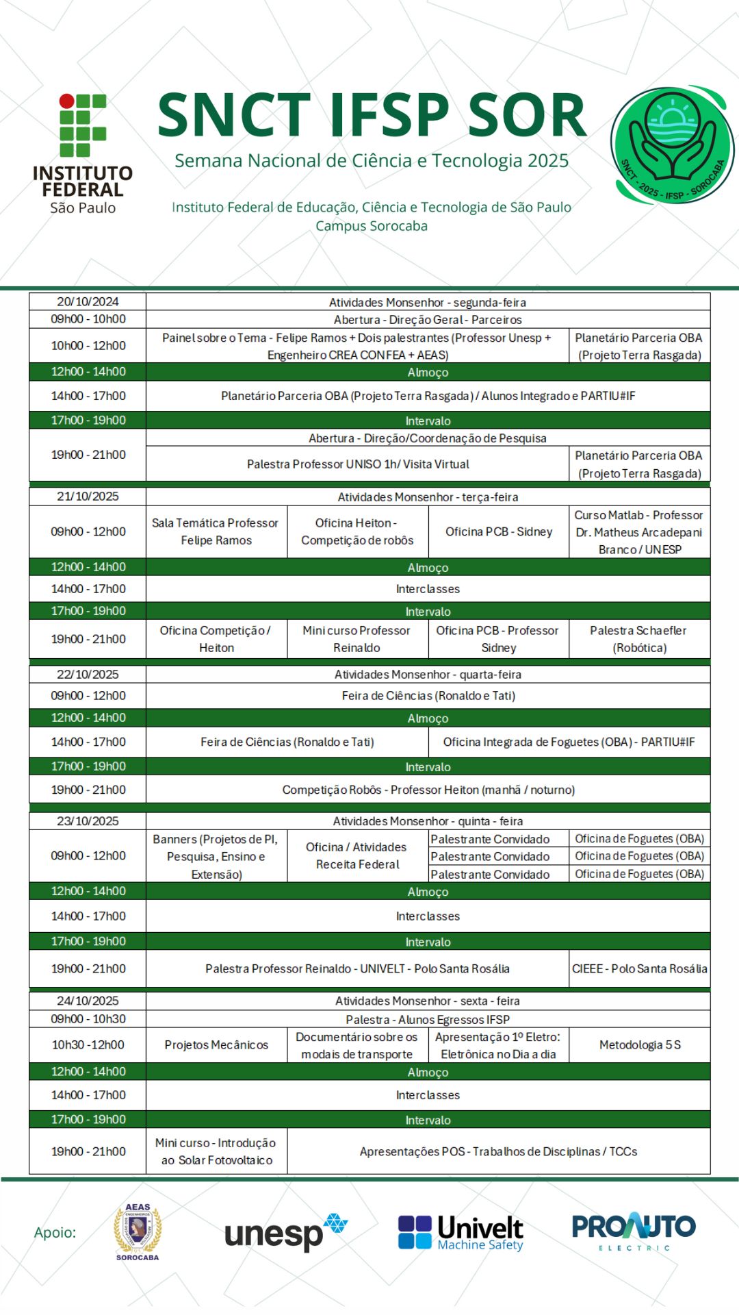 SNCT IFSP SOR - Semana Nacional de Ciência e Tecnologia 2025