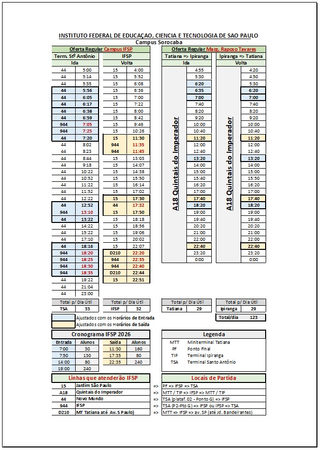 Atenção aos horários de ônibus para o novo Polo do IFSP - Campus Sorocaba.